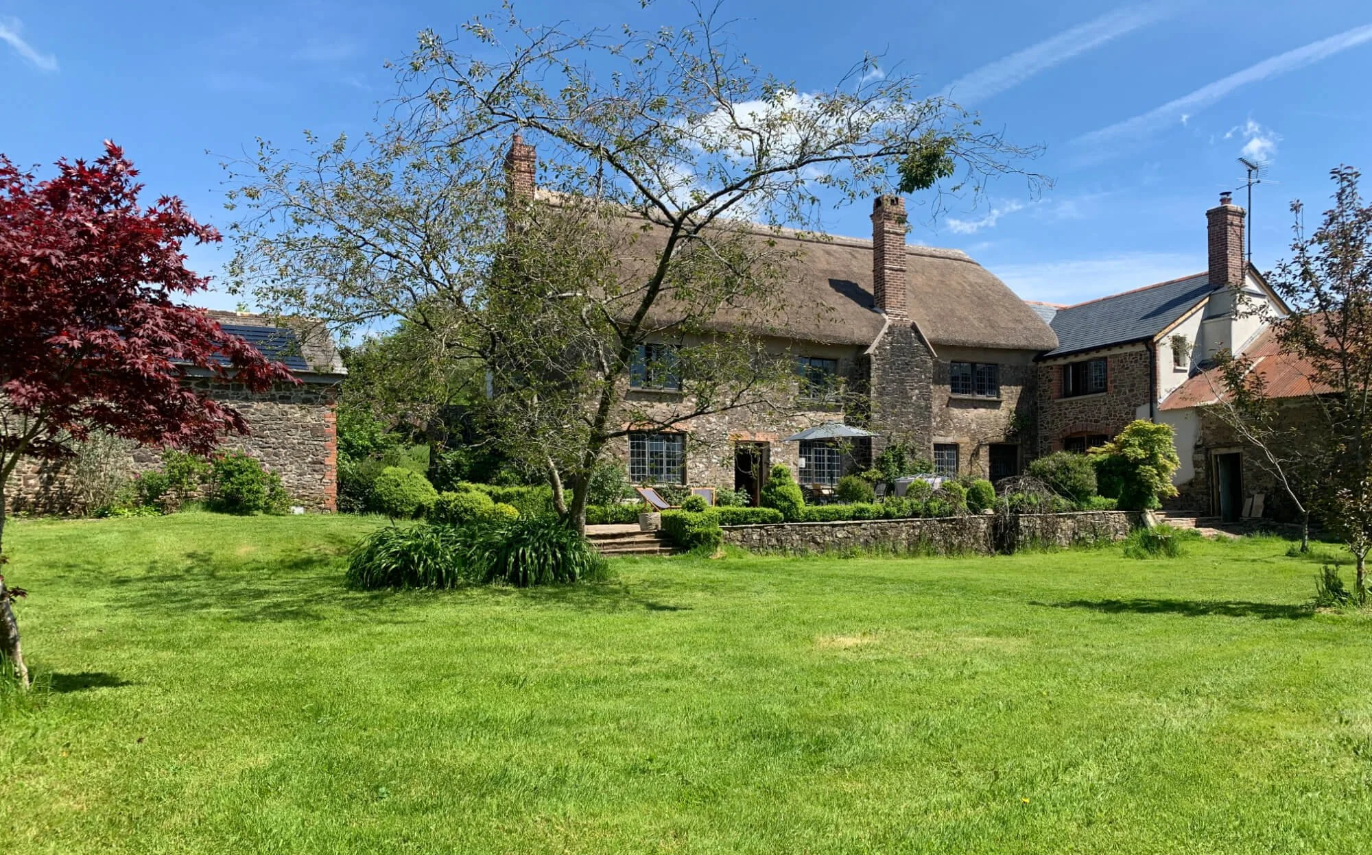 Accommodation – 5 Star – Sleeps up to 4 people – 2 spacious bedrooms both with ensuite bathrooms. Large open plan kitchen, dining and living area. Keepers Lodge is a recently built extension to a Grade II listed 16th century thatched Devon longhouse.