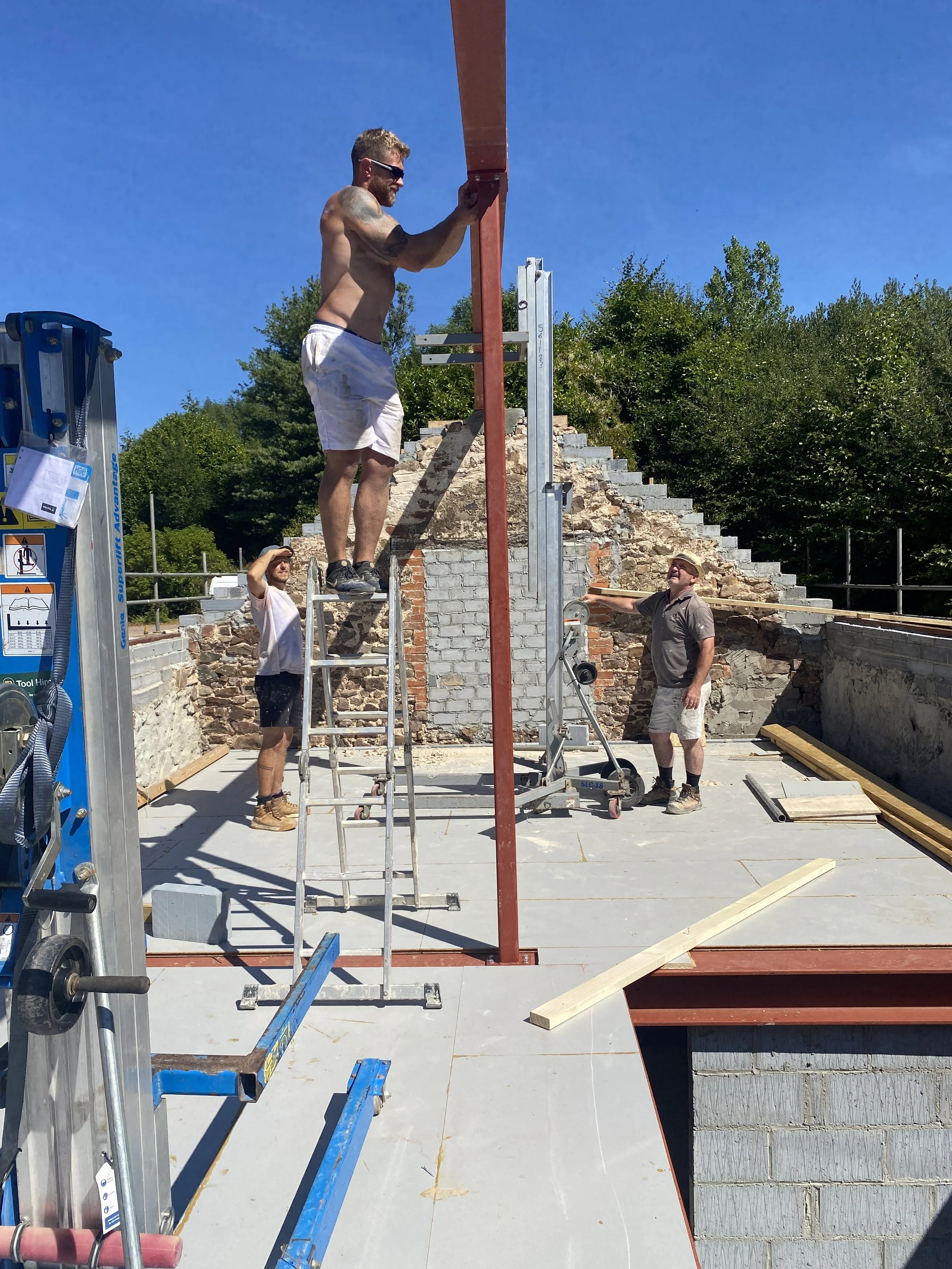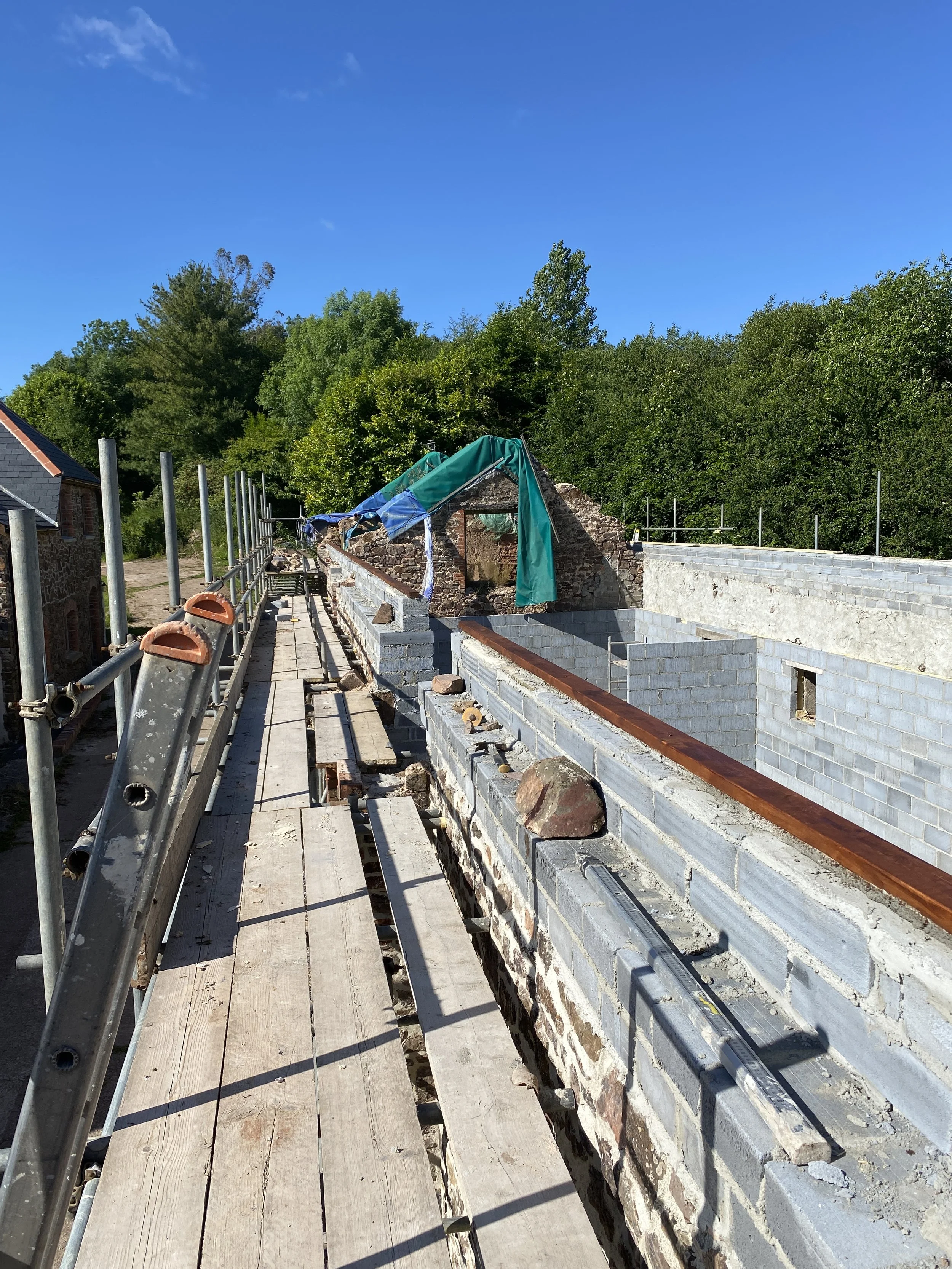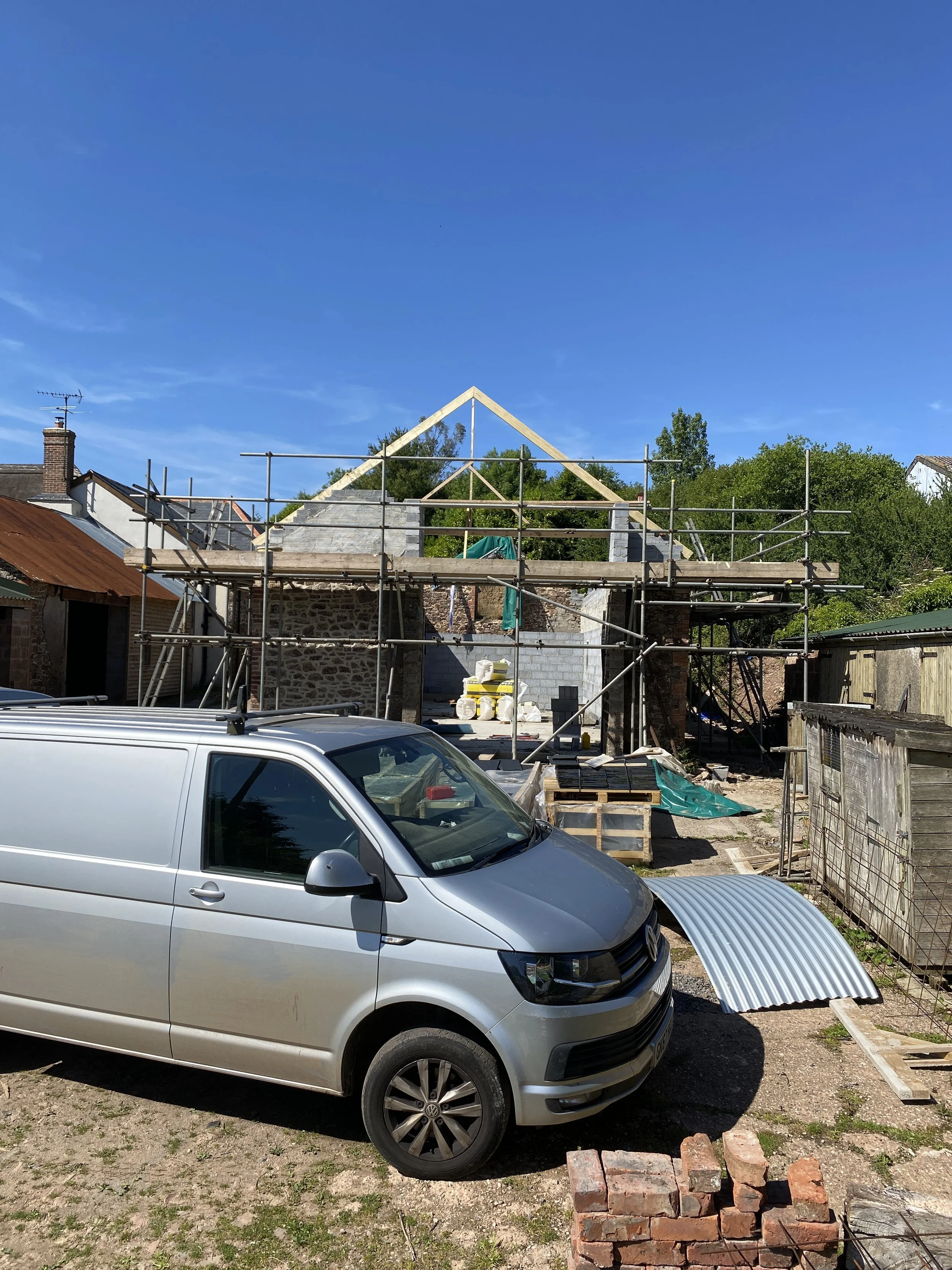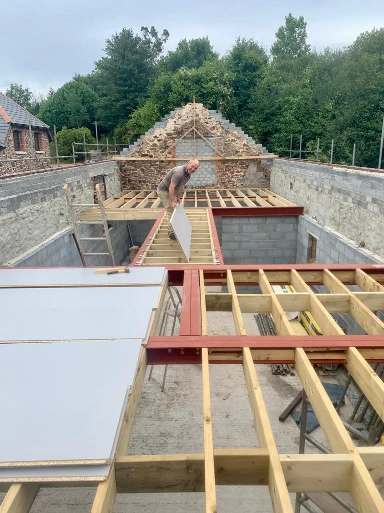 Sadly, in June 2022 we lost Russ. He died from a heart attack while on a weekend away. Russ had become a dear friend; he’d worked on Enfield House and Keepers Lodge with us and we’d got to know him really well. He was, and is, greatly missed. Work understandably stopped for a few weeks and we were hugely relieved when Rob returned. I took an extra day off work each week to help Rob and the project, and Rob managed to recruit some very capable builders to support him and keep the conversion moving forward.