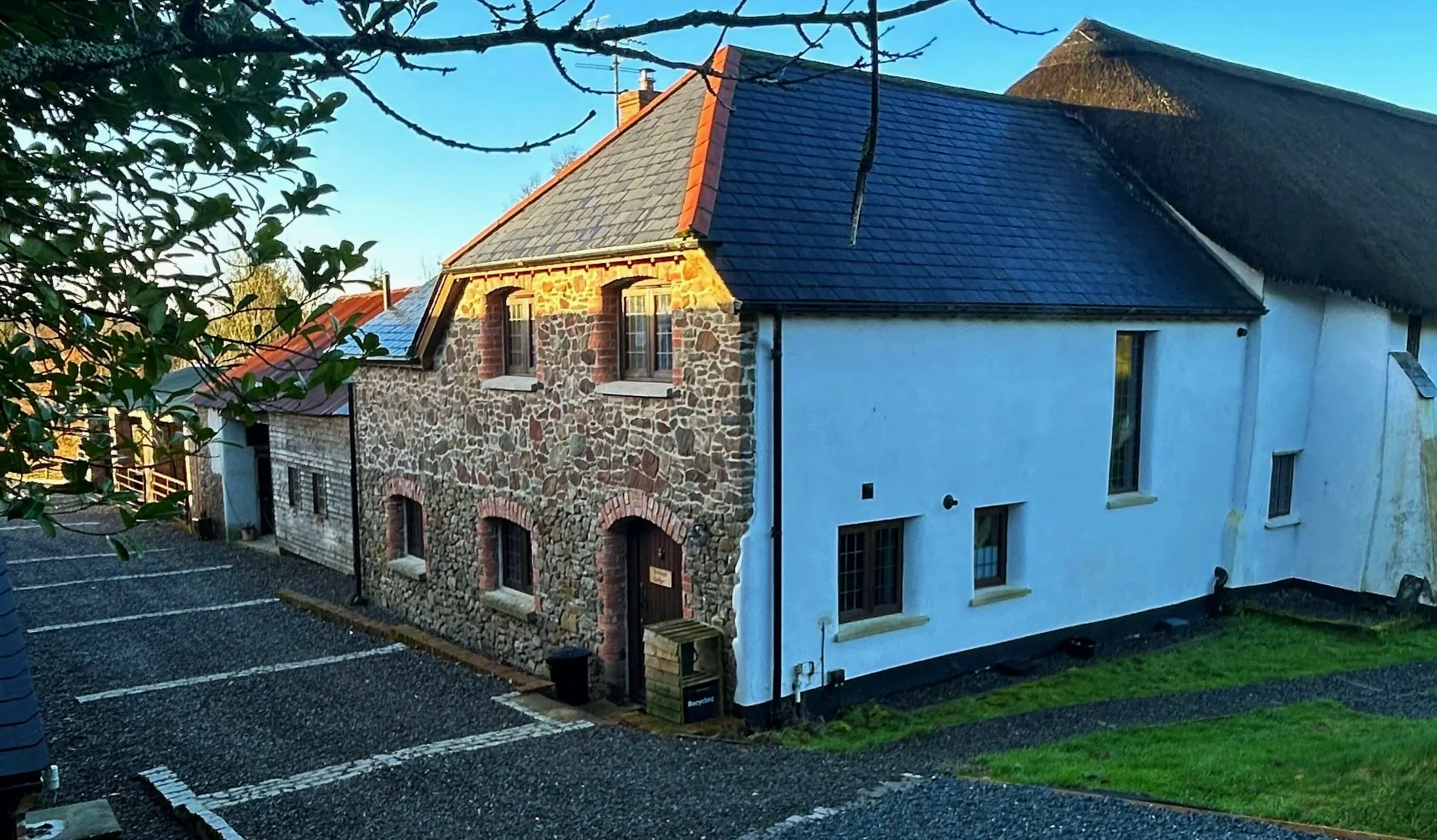 Recently restored and built lodge, part of Luckett Farm a 16th century thatched Devon long house with original features alongside luxurious, contemporary furnishings.